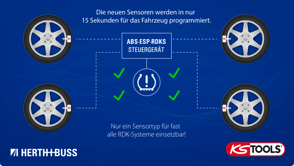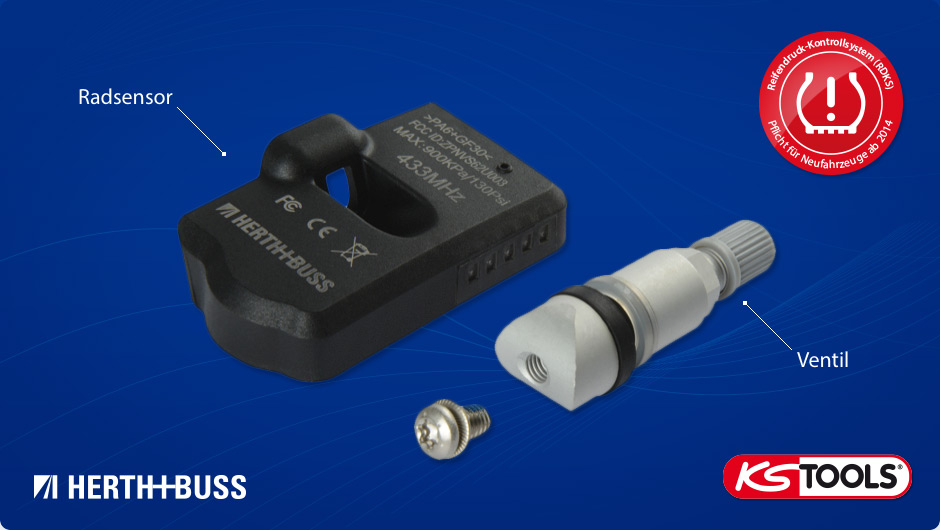 Diese Universalsensoren können für alle Fahrzeuge mit serienmäßig verbautem Reifendruck-Kontrollsystem eingesetzt werden. Die Sensoren sind einzeln bestellbar und werden mit Ventilkit geliefert. Wir empfehlen die strenge Einhaltung der vorgegebenen Drehmomente: 2 Nm Ventilschraube, 4 Nm Ventilmutter. Dazu nutzen Sie am besten die Werkzeuge des KSTOOLS Werkzeugsets. Das Programmieren und Ausrichten auf das jeweilige Fahrzeug dauert pro Sensor zwischen 5 und 15 Sekunden. Ein Plus der Universalsensoren: Die originale Serien-/ID-Nummer kann vom "alten", vorhandenen Sensor auf den neuen kopiert oder neu vergeben werden.